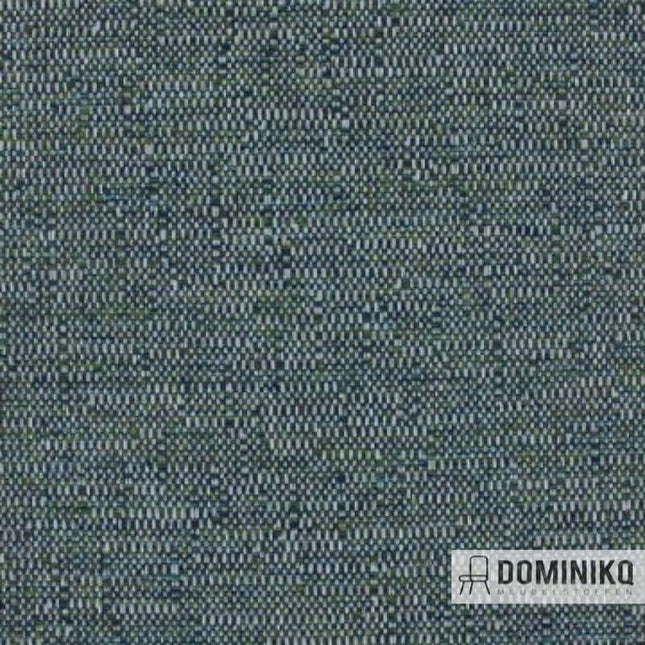 • Grof geweven meubelstof Pixie van Casal met kleurrijk patroon en duurzame OEKO-TEX eigenschappen, ideaal voor milieuvriendelijke interieurs. Mid-century stoel bekleed met Casal Pixie stof, detail van blauwgroene textuur, duurzaam en milieuvriendelijk ontwerp.